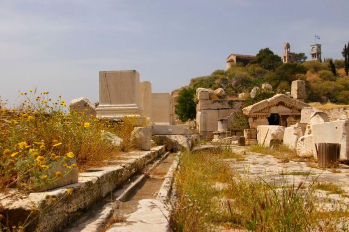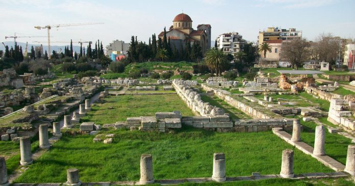 Агора — центральная городская площадь Афин. Здесь проходила торговля и общественные собрания. Этот обширный участок образовался в VI веке до нашей эры. Сейчас здесь остались только памятники и развалины более 30 зданий.