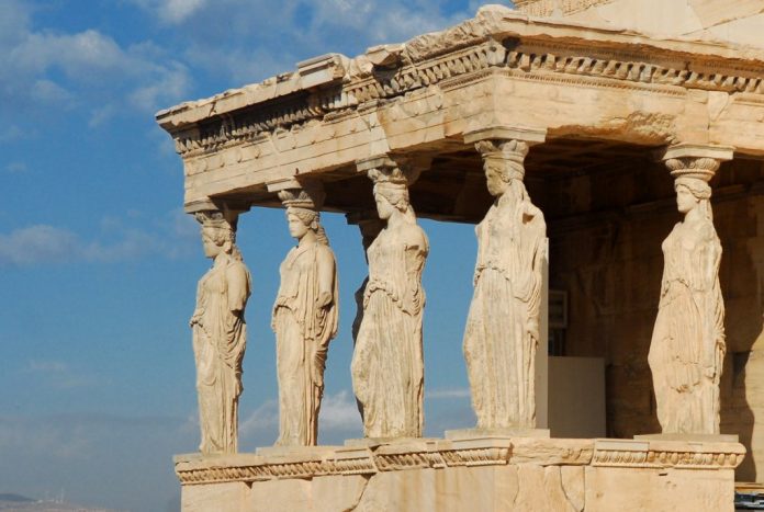 Главная достопримечательность Эрехтейона — портик Кариатид, крышу которого поддерживают шесть кариатид, вырезанных Каллимахом или Алькаменесом.