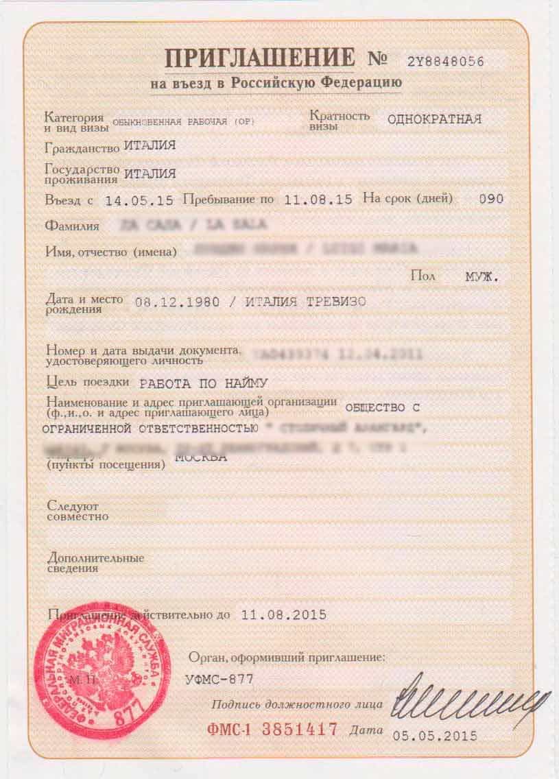 - Оригинал приглашения, оформленного в подразделении ФМС России;