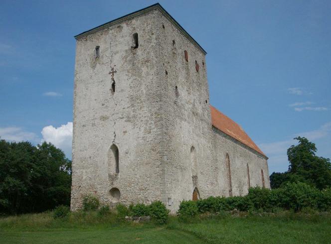 и не найдя централизованного входа в болото :-) мы подъехали к Церкови Пойде Укрепленная церковь XIII века. За придорожными деревьями стоит самая старая цервоь на территории Сааремаа. Вокруг поле, заросшее травой и цветами. Глядя на стены церки, постойка больше похожа на крепость (так и есть - эту постойку использовали в том числе и как укрепительное сооружение).
