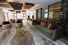 Холлы и вестибюли комплекса по своему уровню соответствуют интерьерам высококлассных отелей. В декоре используются натуральный мрамор, изделия из ковки, высококачественные отделочные материалы.