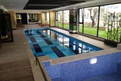 Инфраструктура комплекса: бассейн с детской секцией, хамам, сауна, массажные комнаты, комната отдыха, зал для занятий спортом, охраняемая территория, видеонаблюдение, консьерж, ресепшен на входе в комплекс, генератор.