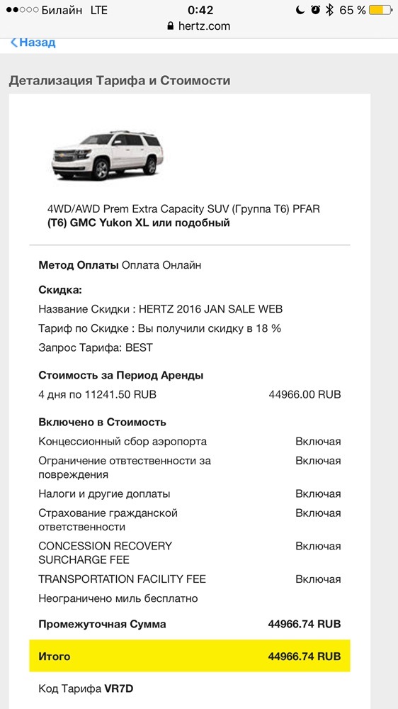 Мой план был прост, я был готов к Юкону или Субурбану, ну на крайняк Эскалейд. Ведь часто пишут местные, что в случае если нет в наличии автомобиля вашего класса бронирования, то без проблем прокатная контора дает автомобиль выше уровнем. А так как кузов мне нравился в любом виде, то я готов был рисковать)))