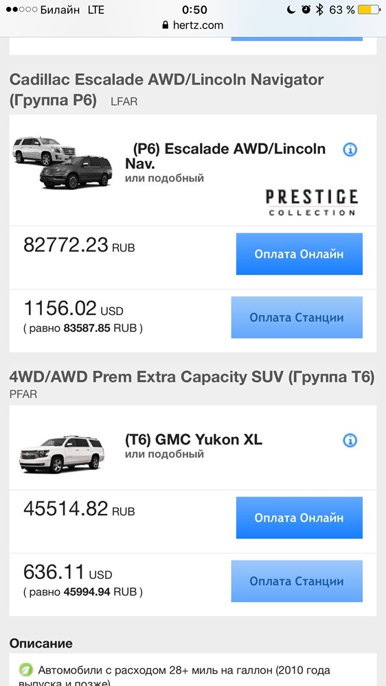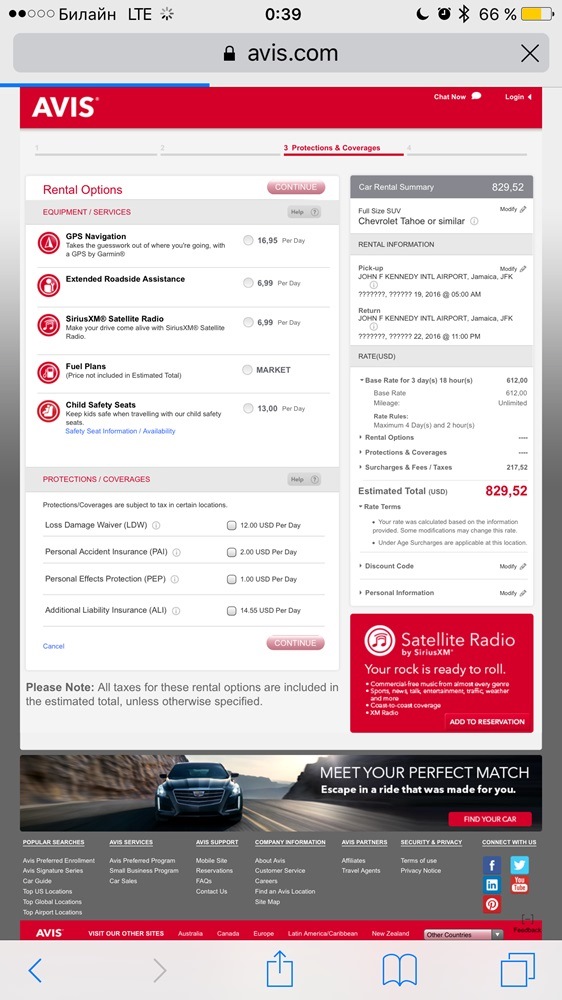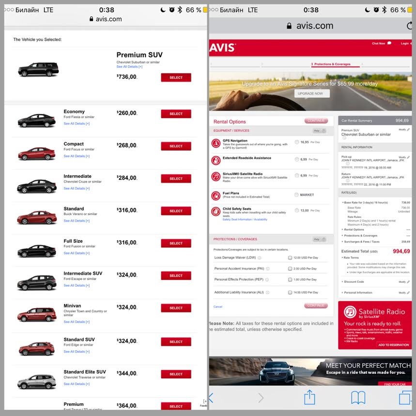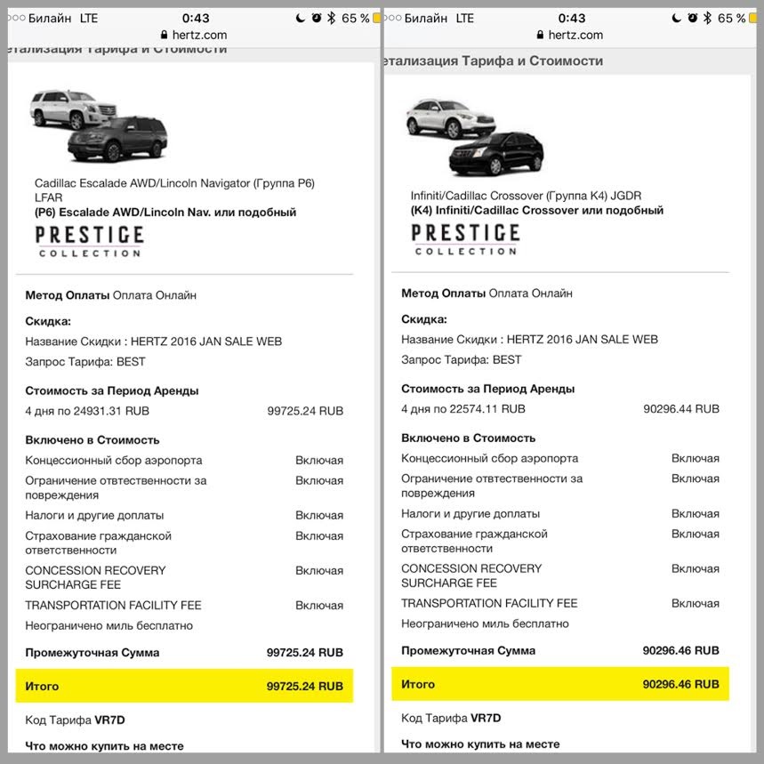 Выбирал между этими 2 предложениями. Кадиллаки были в обоих местах! Решил что 10 штук не лишние и оплатил Авис! Цена окончательная со всеми страховками.