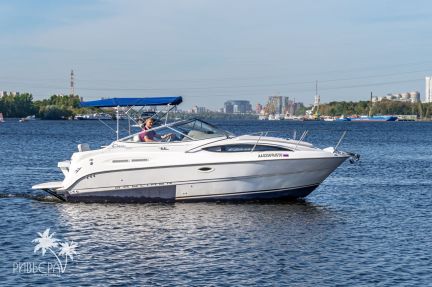 Роскошный американский катер с открытым верхом понравится тем, кто предпочитает ветер и скорость. Такой отдых не оставит равнодушным никого, ведь под капотом установлен монстр V8 мощностью 300 лошадиных сил!