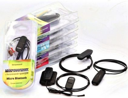 Микронаушник Professional – данный комплект внял в себя все «фишки» (выводной микрофон, кнопка-пищалка, кнопка приема и сброса вызова), в добавок ко всему питается от аккумулятора и имеет усиленное звучание. Очень чувствительный микрофон!