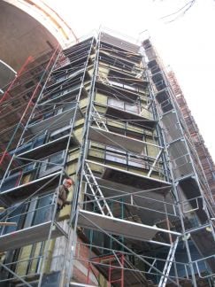 Все фасадные и отделочные работы многоэтажных и высотных домов и зданий производятся с помощью такой конструкции как леса строительные. С их помощью рабочие легко перемещаются по фасаду зданий и сооружений, а также переносят с собой необходимые для работы инструменты и материалы. Квадратный метр такой конструкции выдерживает около 200-250 кг. Аренда строительных лесов актуальна для фасадных работ на высоте от 20 метров, так как на более низкой высоте можно обойтись с помощью лестниц, помостов и вышек. Строительные леса представляют собой сборные металлические рамы, соединенные горизонтальными и диагональными связями. Конструкция крепится к фасаду здания и накрывается фасадной сеткой, чтобы мусор, пыль и другие неприятности не покидали строительную площадку. Аренда строительных лесов в СПб очень актуальна в связи с частыми реставрационными работами, поскольку многие здания и их фасады представляют собой историческую ценность.