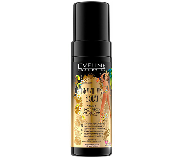 Пена для автозагара Brazilian Body бренда Eveline Cosmetics очень простая в использовании и стоит очень дешево. Этот вариант отлично подойдет для тех, кто только знакомится с автозагаром и не хочет тратить много денег на покупку дорогих лосьонов и кремов.