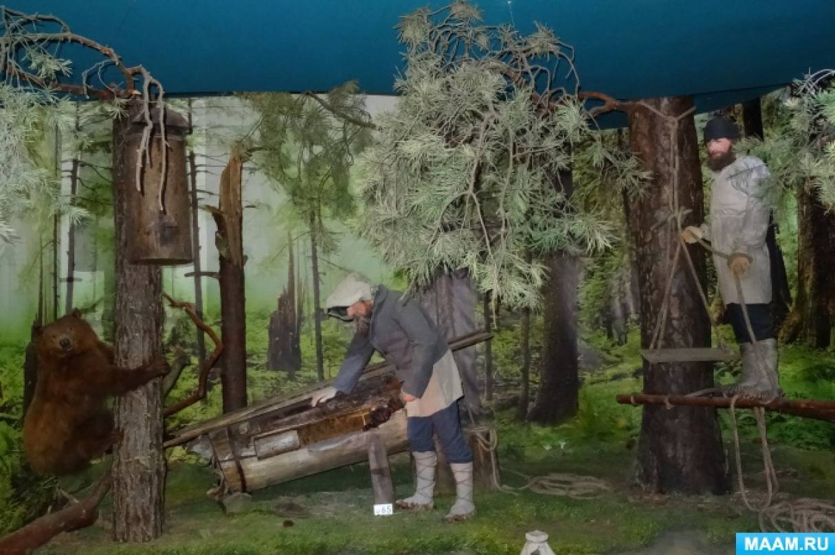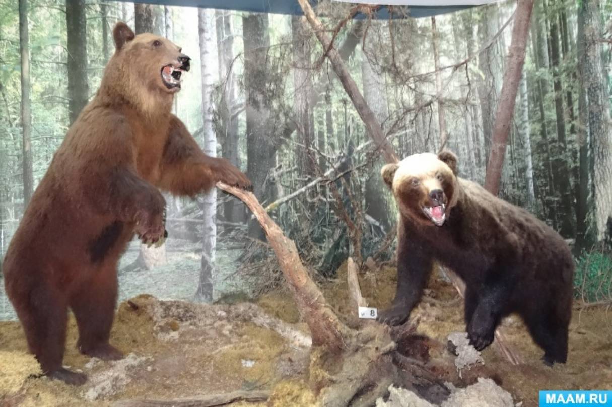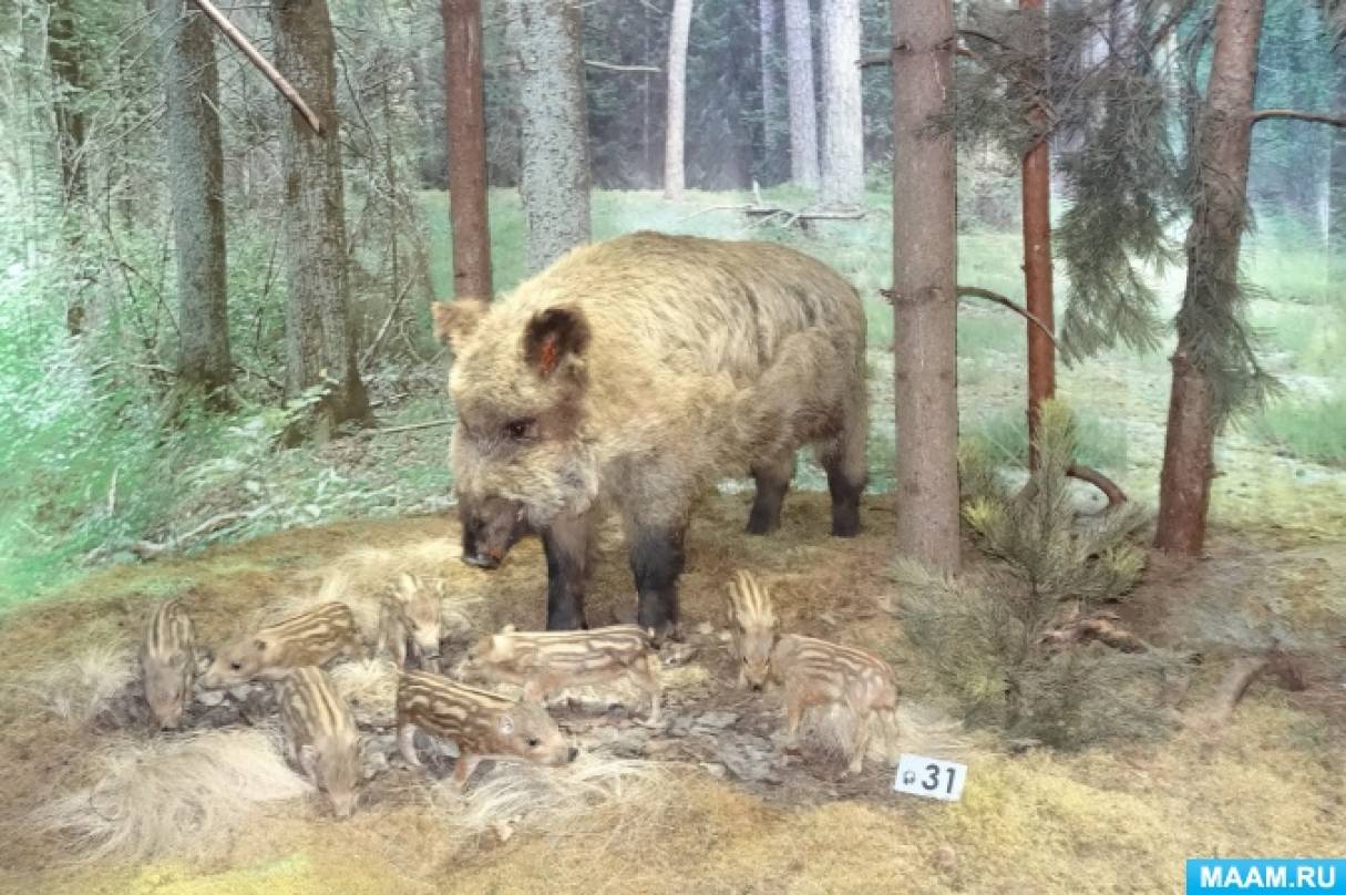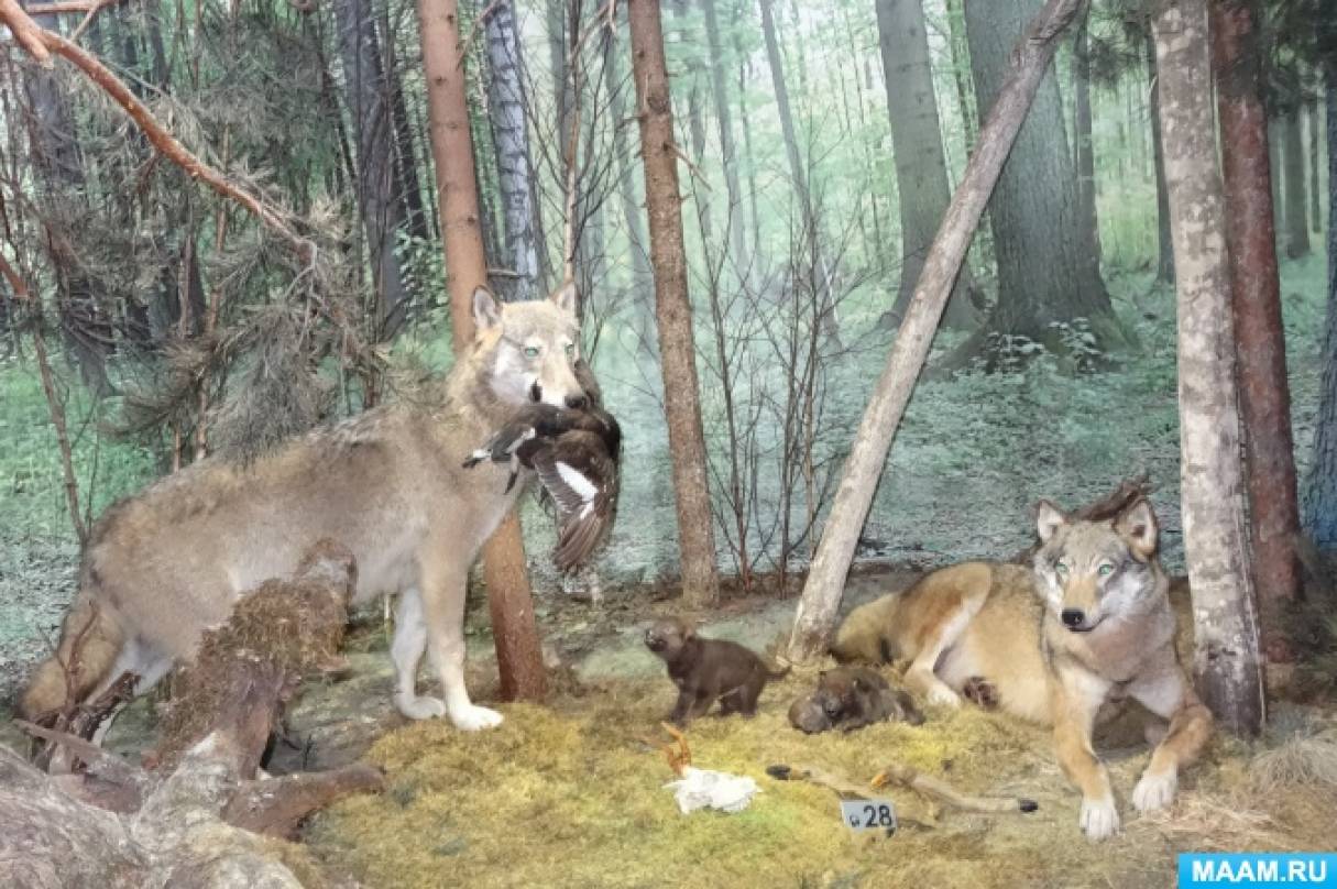 В залах оформлены композиции – диорамы, которые наглядно отражают условия обитания, отдельные характерные эпизоды из жизни лесных обитателей.