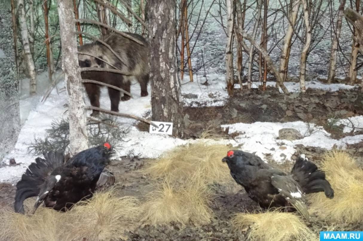 Экскурсия в музей природы Целью данной экскурсии было познакомить детей с особенностями диких животных, разновидностей птиц обитающих в родном крае. Дать представление.