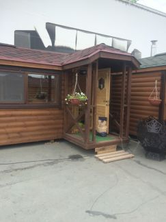 На первом этаже – сауна с бассейном и комнатой отдыха, на втором – гостиница с 4 номерами и раздельным санузлом на этаж.