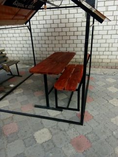 Реализуем беседки садовые. Каркас беседок изготовлен из оцинкованной сварной трубы 40*40мм, 40*20мм и 30*30мм. Верх покрывается поликарбонатом сотовым. Столешница и лавки изготовлены из струганной сухой обрезной доски (без покрытия)