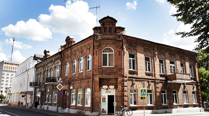 Напротив мужской гимназии – на углу ул. Бутримовича и ул. Ленина – стоит дом из красного кирпича в эклектичном стиле, построенный в начале XX в. Его хозяйкой была Леонтина Орда – невестка знаменитого художника, композитора и музыканта Наполеона Орды . Срезанный угол-вход, орнаментальная кладка, ажурные балконы выделяют его среди других зданий улицы.