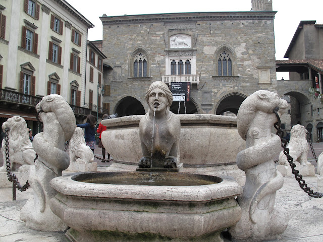 Фуникулер Bergamo Alta останавливается в паре минут ходьбы от центральной Старой площади Piazza Vecchia. Каждый вечера в 10 часов над ней раздается колокольный звон с башни Torre del Campanone , который объявляет о необходимости закрыть ворота города. Сегодня это только традиция, напоминающая о том, что когда-то этот город был целью захватчиков.