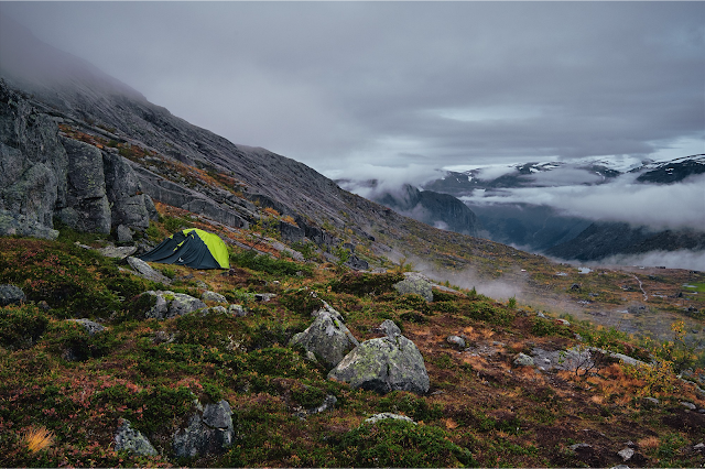 Туристы остановились. То ли на привал расположились, то ли на ночевку. В Норвегии можно установить палатку в любом месте, если это не частная собственность. Без вопросов, сроком до 3 дней. Ведь у всех должен быть доступ к природе.