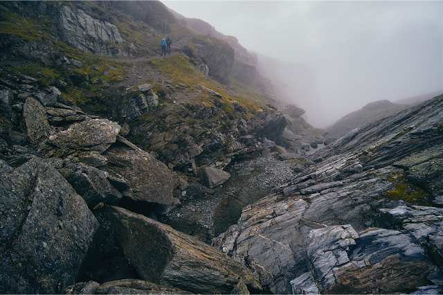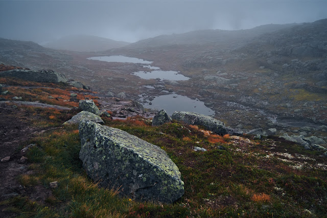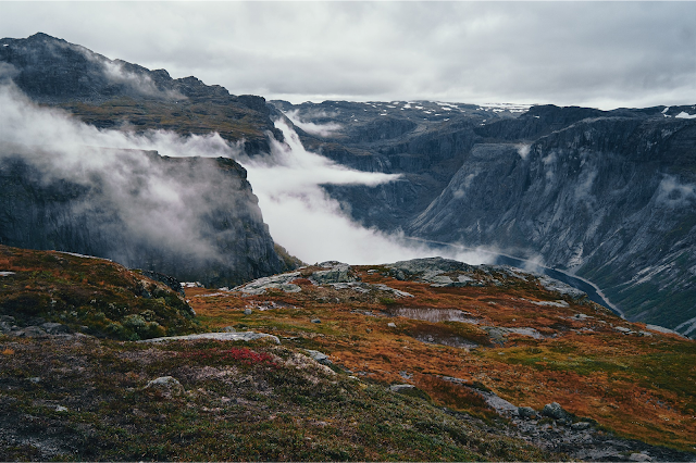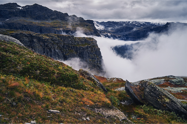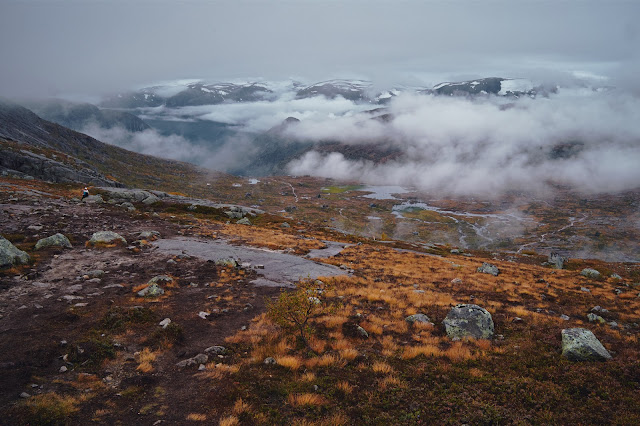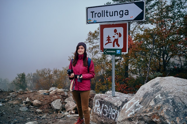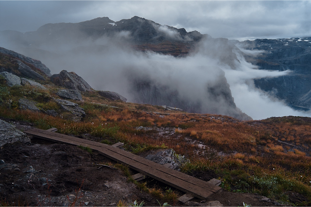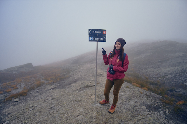 До легендарного Trolltunga около 14 км в одну сторону. А еще спуск. Я психовала и злилась. Но мы дошли до самого верха, самого до Языка Тролля. А там - непроглядный туман и очередь турисов, желающих сфоткаться на языке. Реально очередь :)
