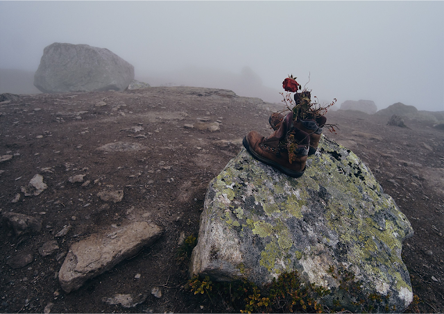 Еще забавная традиция - оставлять на подходе к Языку Тролля свои вещи. Вот старые ботинки. Видели еще несколько пар. Шапки, перчатки и даже курточку.