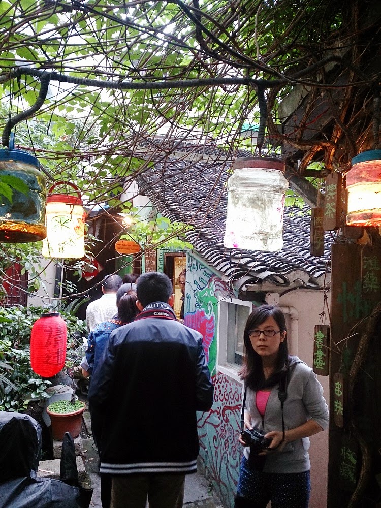 Мы доехали до стан ции метро Дапутьяо ( 打浦桥 | D ǎ pǔ qiáo), 9 ветка, 1 выход. И, как изобразили на карте снизу, оказались в очень-очень приятном, уютном и просто интересном местечке с узкими улочками, барчиками, галереями, кафе и лавками, полными ручной работы. Называется это место - Tianzifang - небольшой квартал старой постройки. Прикупить что-то мы цели не ставили, но глаза разбегались :)