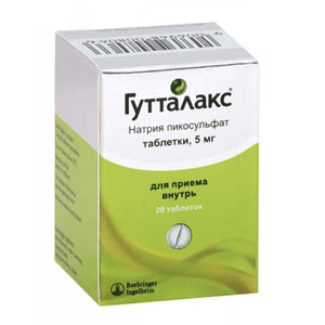 Препарат выпускается в форме таблеток, капель для приема внутрь и ректальных суппозиториев. Продается в аптеках без рецепта врача. Основное действующее вещество – пикосульфат натрия. Послабляющий эффект достигается за счет стимулирующего действия препарата на слизистую оболочку кишечника, особенно – толстой кишки. Хорошо работает при хронических запорах, помогает мягко очистить кишечник. В форме капель применяется и у детей. Допустим прием у беременных и кормящих мам.