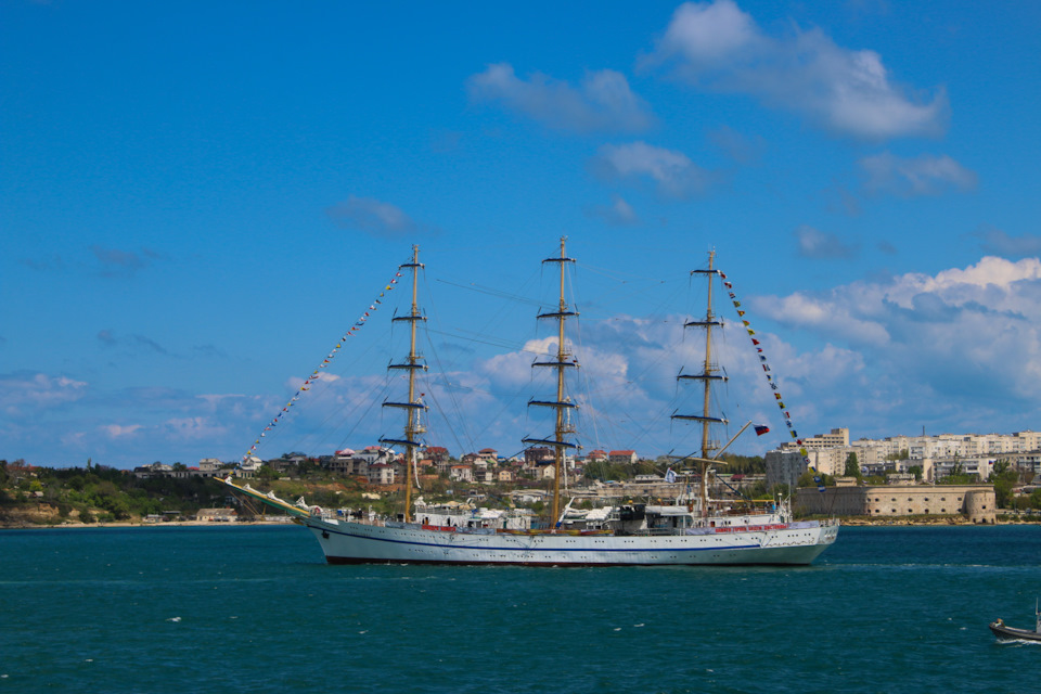 Особенно было интересено посмотреть морской парад, но его как такового не было. Только из бухты вышло парусное учебное судно Херсонес, на этом вся морская часть и закончилась.