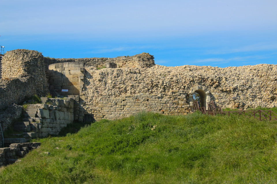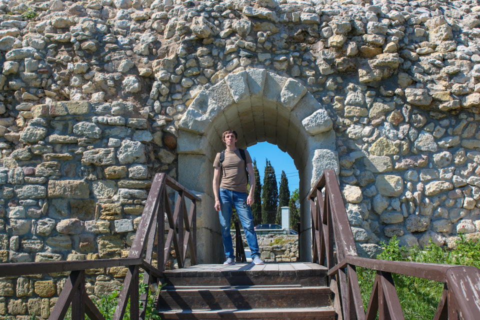 Арочный проём в крепостной стене. По фото можно примерно оценить толщину крепостных стен — порядка 1,5–2 метров! Очень достойно для античности.