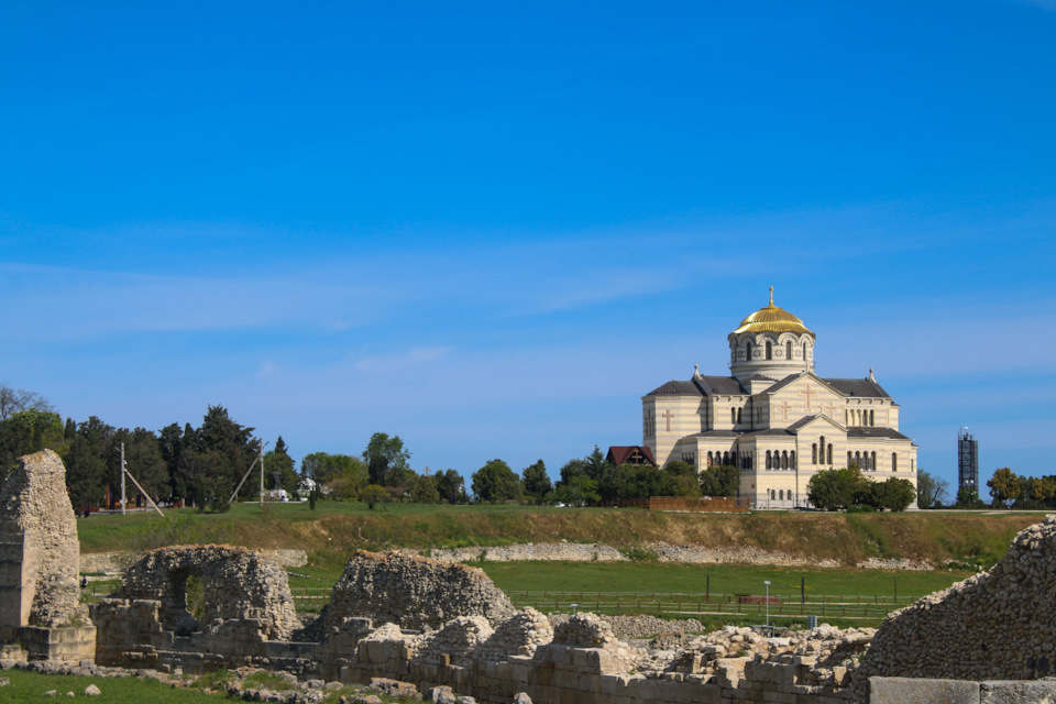 На вершине холма над Херсонесом возвышается церковь Святого Владимира.