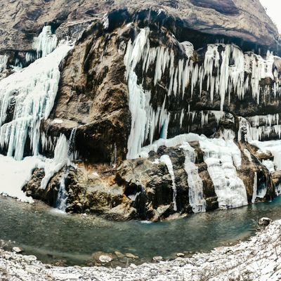 Три красивых озера в горах Домбая, которые появились примерно 150–200 лет назад, когда произошел обвал горных пород. Прохладная река с одноименным названием протекает через все три озера. Вода здесь меняет цвет в зависимости от погоды и времени суток от нежно-бирюзового до темно-фиолетового.