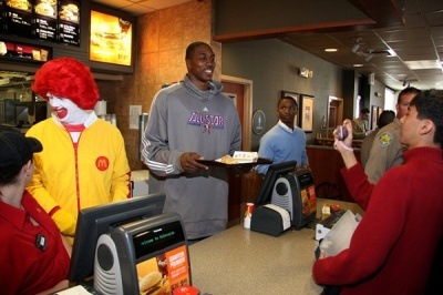 — Веселый клоун Роналд Макдоналд — почти самый узнаваемый из всех вымышленных персонажей среди детей. По популярности уступает только Санта-Клаусу. Клоун встречает на входе в рестораны, снимается в рекламе, навещает больных детей в клиниках. А августе 2003 года Роналд Макдоналд был официально провозглашен Руководителем радости (Chief Happiness Officer«) корпорации McDonald’s.