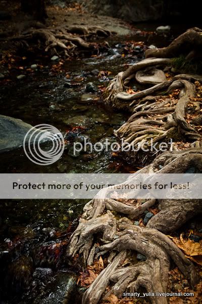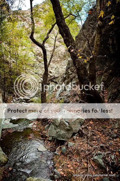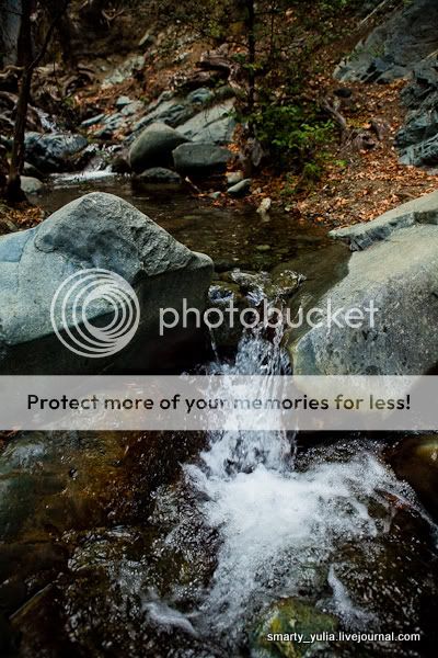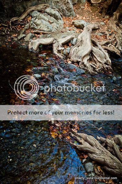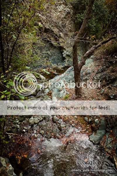 Пройдя большую часть пути мы уперлись в переправу через речушку, т.е. как таковой переправы не было, а было несколько скользких каменюк по которым нужно было перепрыгнуть "водную преграду". Кроссовки мои оказались плохо приспособленными для такого вида упражнений из-за их довольно скользкой подошвы. Речушка была не глубокая, но с ледяной водой и "нырять" подскользнувшись в эту воду совсем не хотелось, еще меньше хотелось, в этих попытках ногу подвернуть или сломать, тем более, что на следующий день после возращения с Кипра, ко мне должны были приехать родители. Я сделала попытку перейти реку по камушкам.