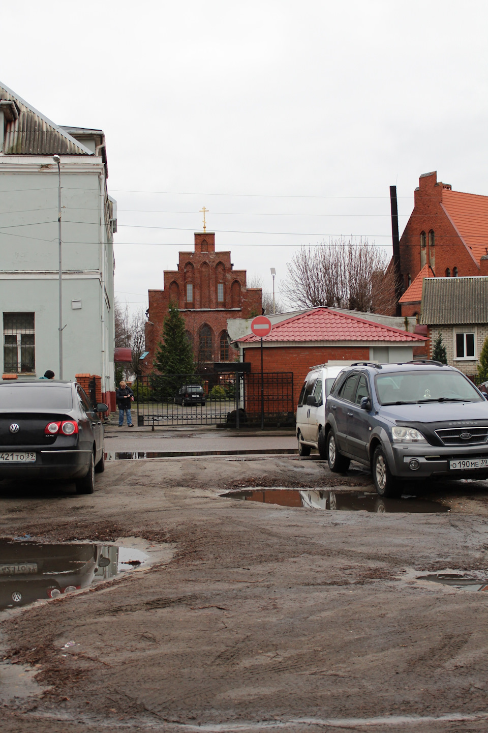 Рядом с музеем, на улице Адмирала Кузнецова, можно увидеть красивое краснокирпичное здание бывшей кирхи, построенное в неоготическом стиле в 1886 году. Сегодня это кафедральный Свято-Георгиевский морской собор Балтийского флота. В его стенах всегда малолюдно и тихо.