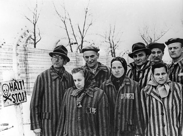| Узники Аушвица перед освобождением советской армией в январе 1945 года |