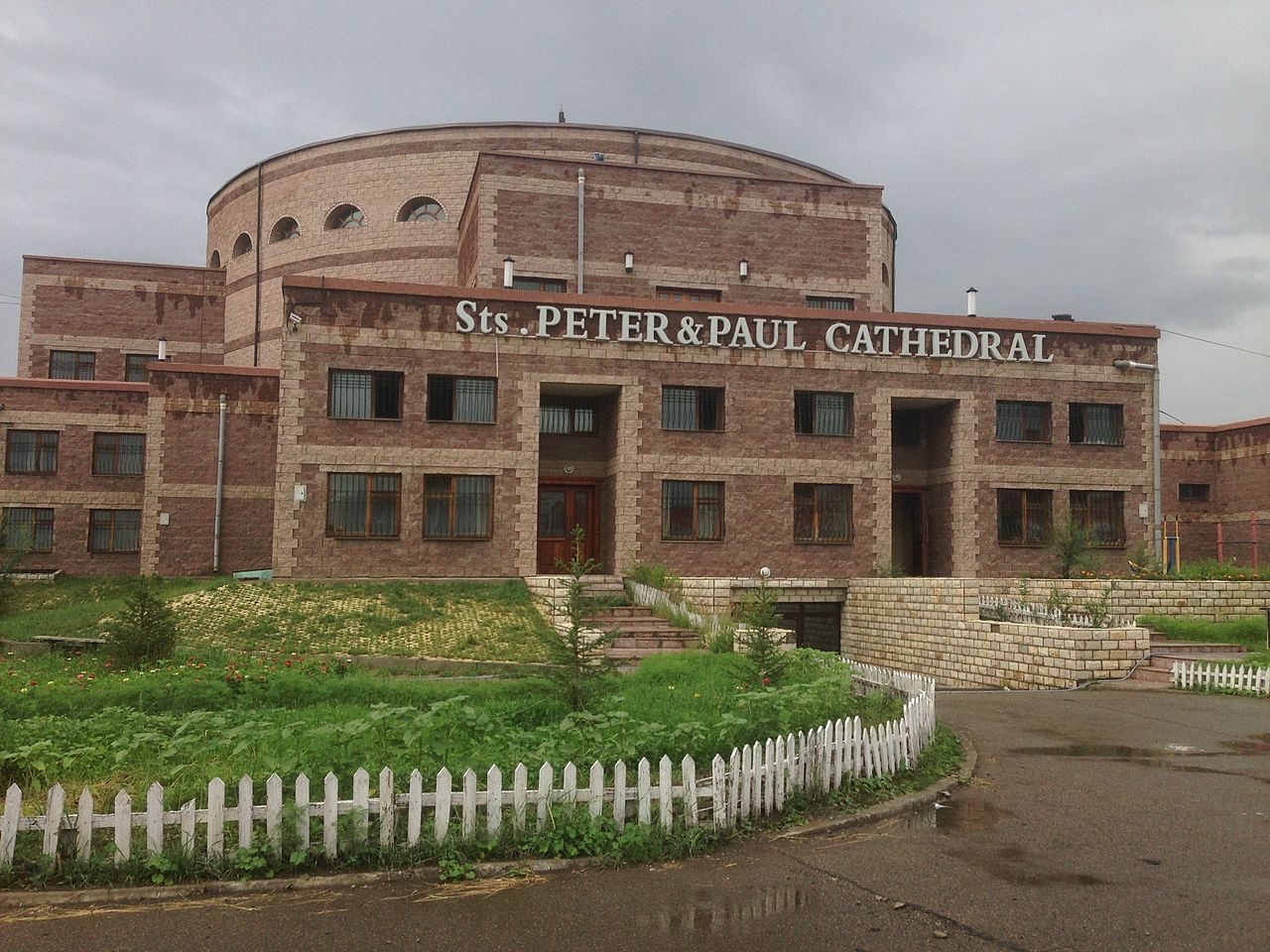 обнаружим столь контрастирующий с местной архитектурой собор святых Петра и Павла,