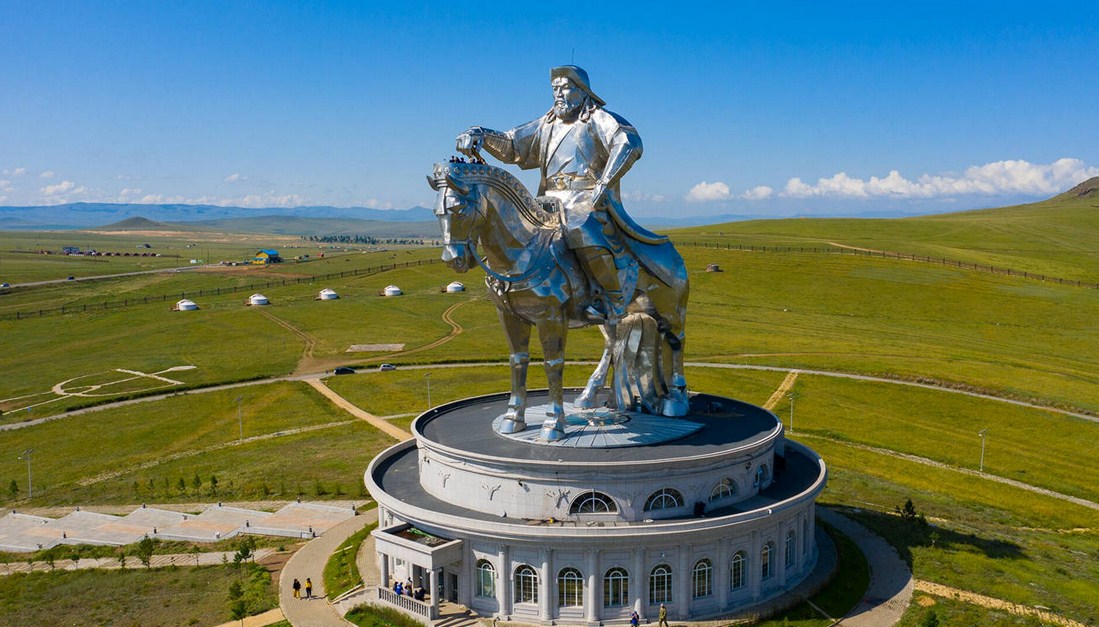 1. Монумент Чингисхану (Золотой Кнут) – величественная статуя Чингисхана, которая считается самой высокой конной статуей в мире. Вокруг 40-метрового монумента установлено 36 колонн, которые символизируют 36 ханов, правящих после Чингисхан. По легенде именно в этом месте началась история Монгольской империи: на вершине холма юный Тэмуджин нашел золотой кнут, который символизировал удачу. Это был знак, что боги благословляют будущего хана на объединение кочевых племен монголов.