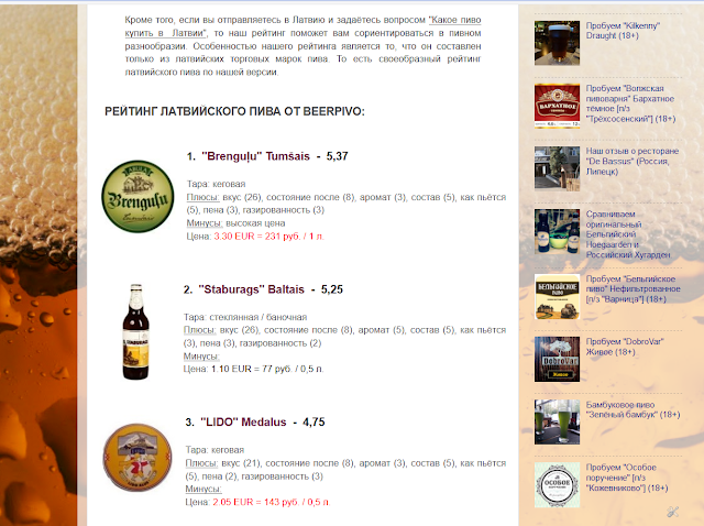 О вкусах не спорят, но тем не менее я бы рекомендовал Вам попробовать определённое пиво, так как латвийского пива многообразное множество и всё попробовать вы просто не успеете. А купить ерунду и разочароваться во время поездки вообще крайне нежелательно. В авторском блоге BeerPivo есть отличный рейтинг латвийского пива.