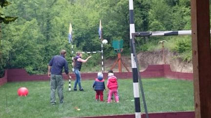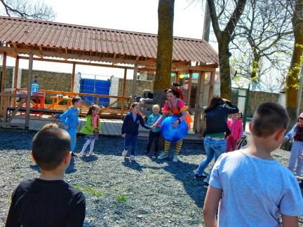 На территории есть совсем скромная площадка, хотя толком непонятно для детей эта площадка или для собак.