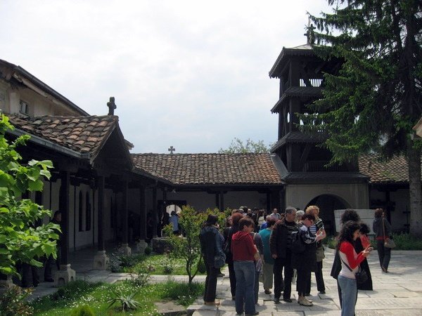 Дворик церкви св. Спаса со знаменитым деревянным иконостасом. Толпу болгарских