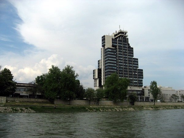 Набережная Вардара. Здание MRTV (я сам не знаю что это значит).