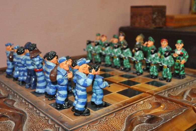 Жизнь зэков В музее больше всего привлекает коллекция поделок зэков. Нарисованные разноцветными ручками и карандашами купюры не отличишь от настоящих. А из пережеванного хлеба можно делать отличные шахматы. Из электрической бритвы получается машинка для наколок. Как все запрещенные предметы оказываются у зеков?