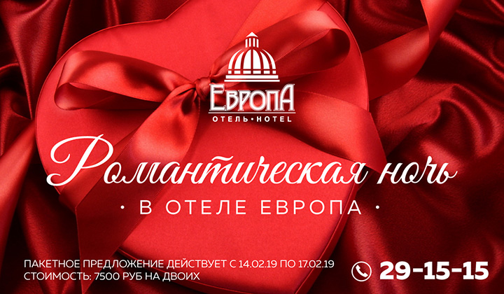 Подарите любимым романтическую ночь в отеле «Европа»!