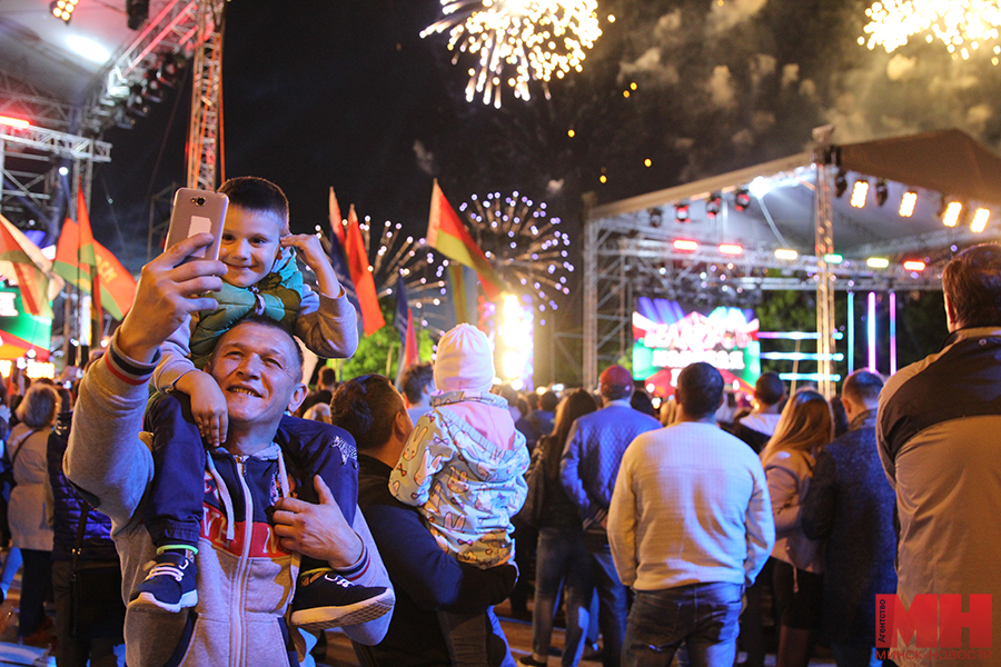 Праздничная шоу-программа начнется в 21:00. Зрителей будут развлекать популярные белорусские исполнители и творческие коллективы.