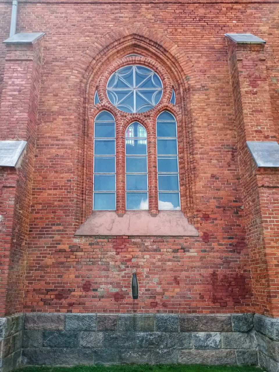 Костелу досталось и во время Второй мировой войны. Его опять восстановили, но уже с помощью кирпича – и в стенах можно найти кладки разных периодов. Какая-то будет посвежее, какая-то более старая, тут один цвет, там другой, где-то можно подметить, что заделывали место попадания снаряда.