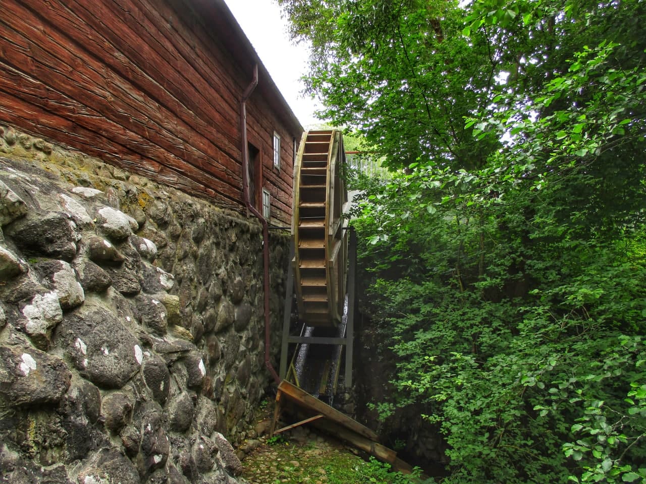 Плата за экскурсию символическая, около двух рублей. А в конце вам включат эту самую мельницу: она каменная, стоит на ручье, и в том месте как раз перепад высот. Сначала запускается большое колесо, начинают вращаться жернова, и видны все механизмы.