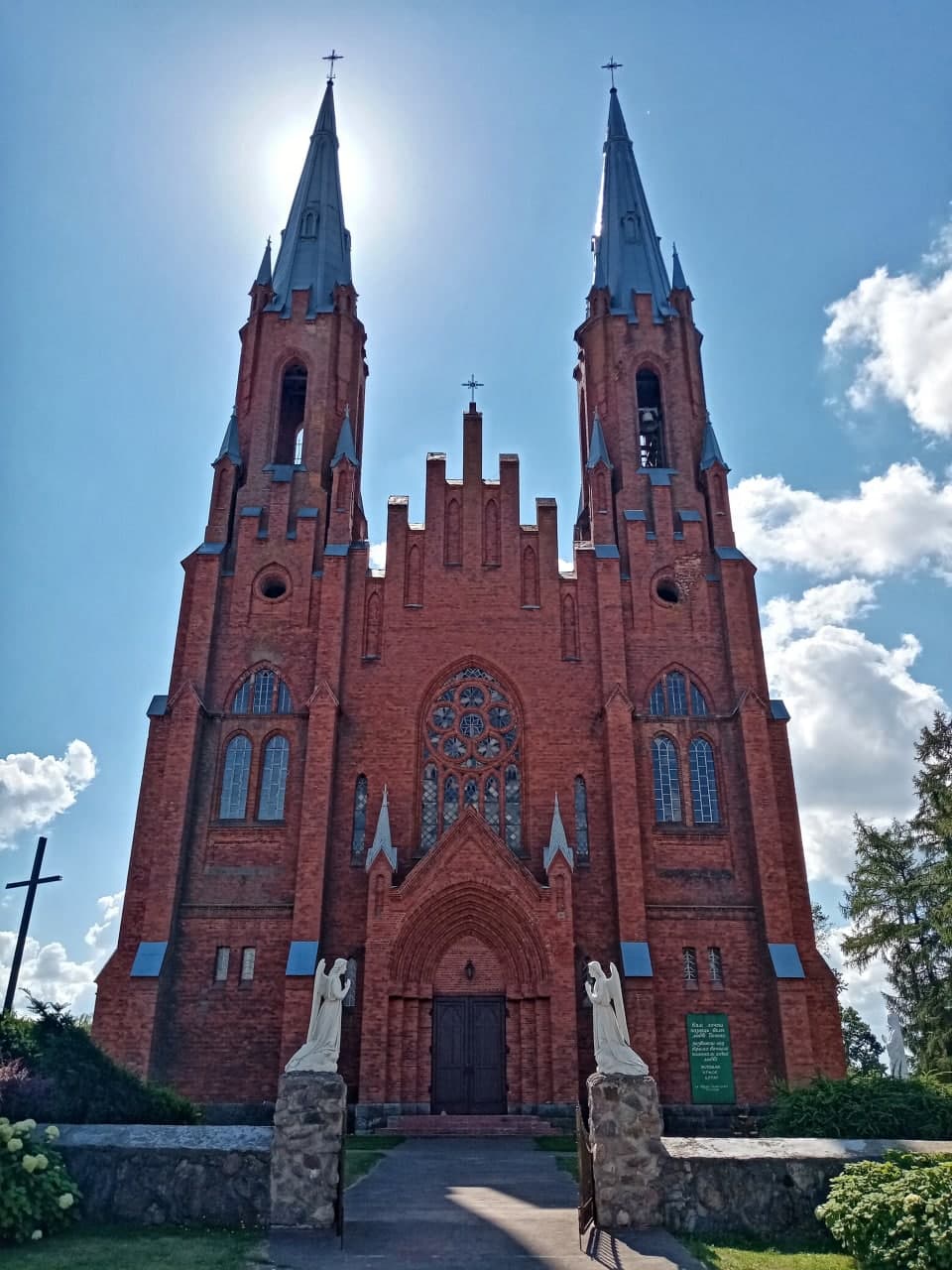 Когда осматриваете костел, внимательно посмотрите на его стены снаружи: там очень хорошо заметна различная кладка кирпича. Дело в том, что костел пережил две мировые войны.