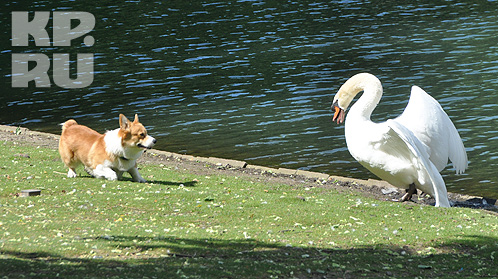 После пробежки Леша отправился в парк, расположенный рядом со своим отелем . Пока Воробьев отдыхал на лавке, его собачка сцепилась с местными лебедями.