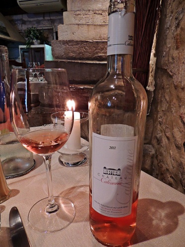 На каждом столике официанты зажгли свечи. Обстановка была очень романтичной. Конечно, вино мы заказали местное, прованское: