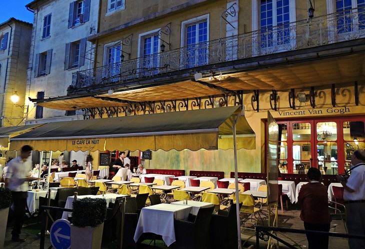 Хотя желтый дом не уцелел, сегодня у почитателей Ван Гога есть возможность воочию увидеть другие места, запечатленные на его картинах. Самое известное из них – это кафе Café la Nuit на площади Форум (Place du Forum), которое легко узнать издалека по ярко-желтому фасаду и толпе туристов. Именно это заведение мы видим на известной картине «Ночная терраса кафе».