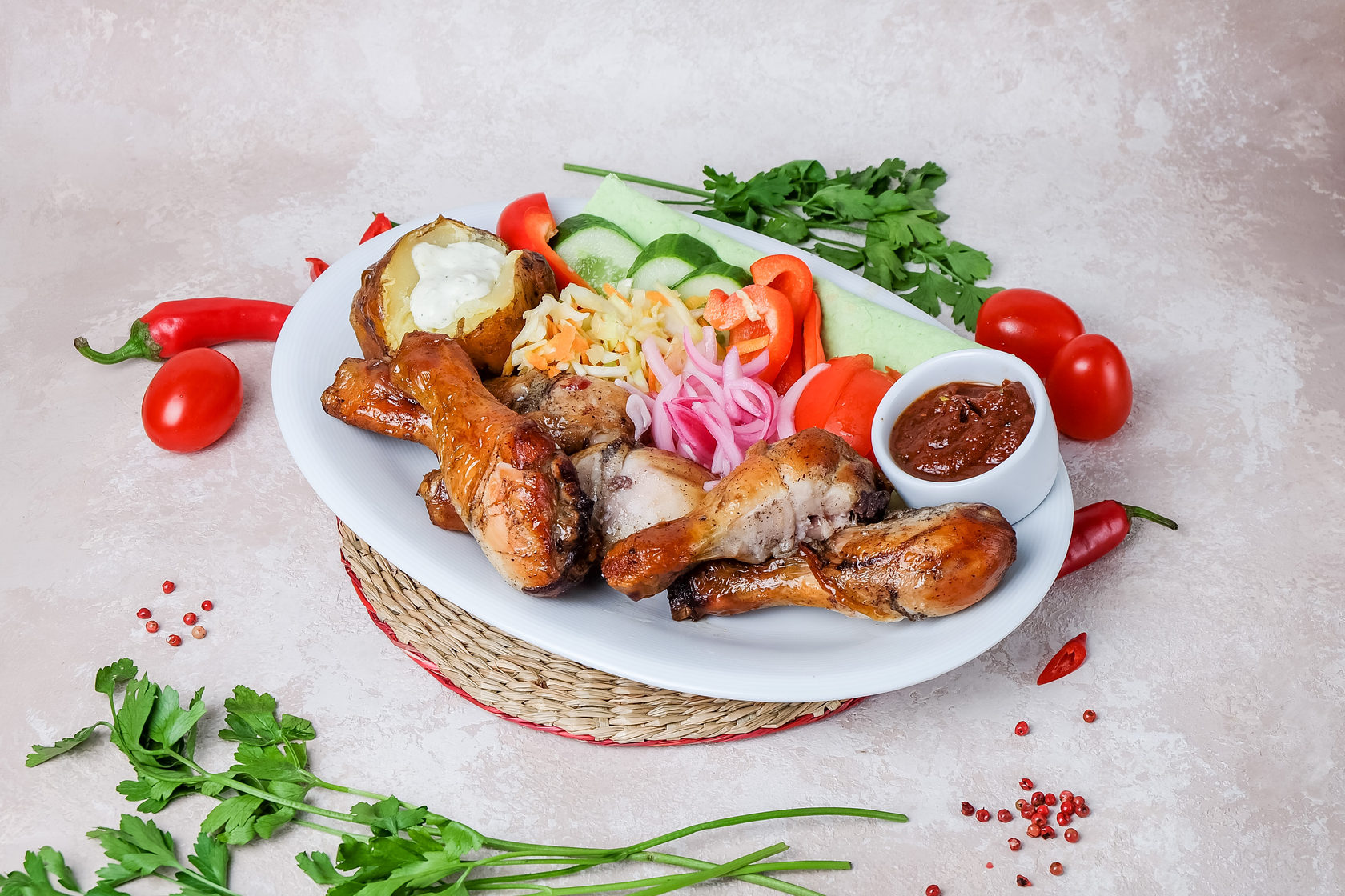 голень куриная 5 шт соус домашняя аджика 20гр, гарнировка 160гр