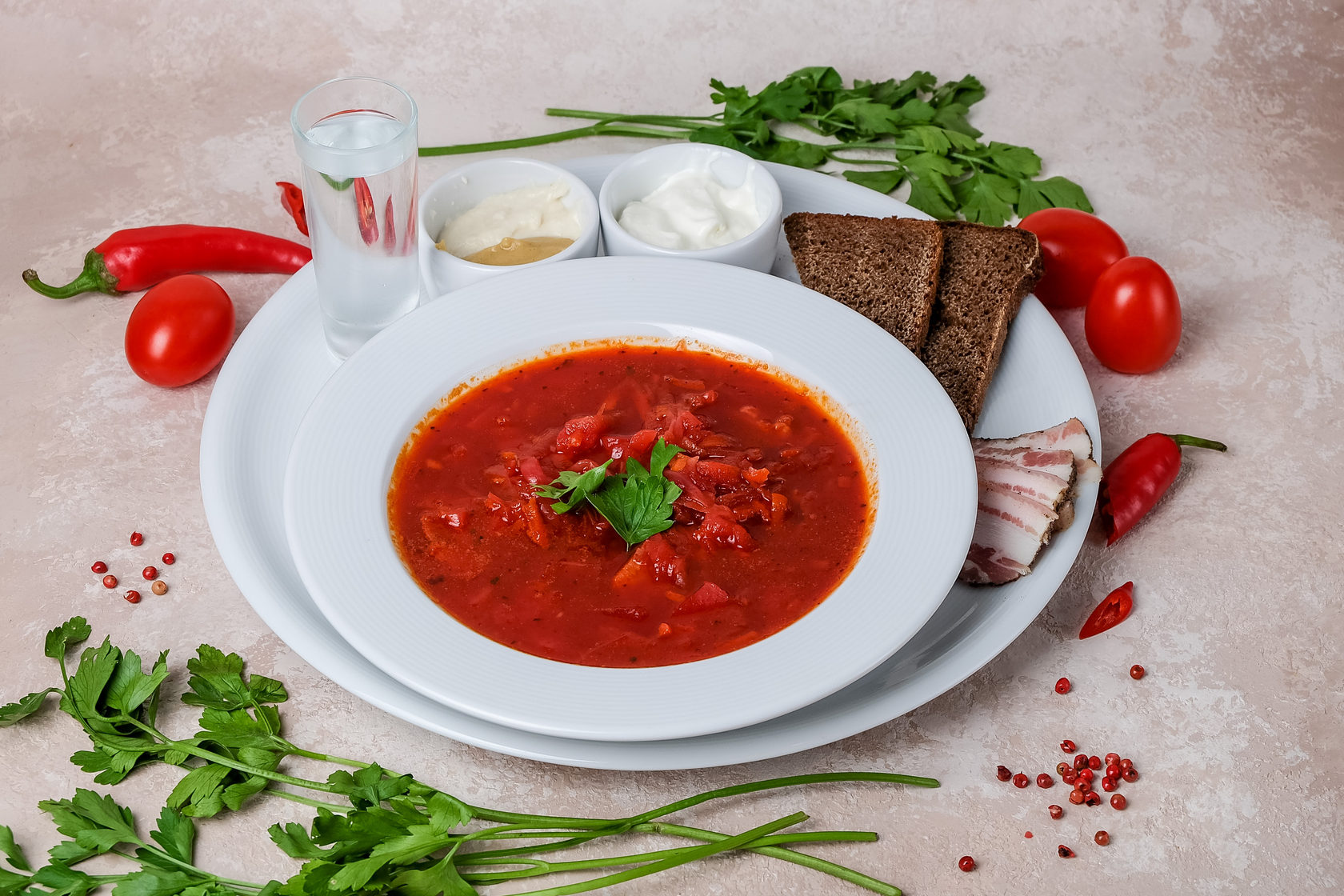 Крем-суп сырный, Суп Солянка мясная, Борщ с говядиной