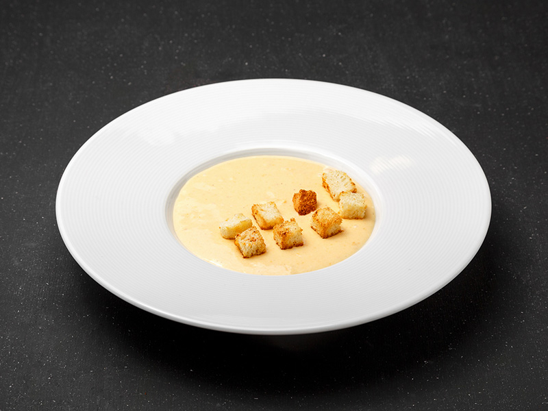 Крем-суп сырный, Борщ с говядиной, Салат Цезарь с лососем, Салат Цезарь с креветками, Гренки чесночные, Кесадия сырная