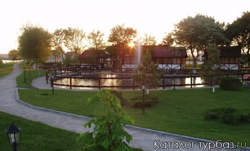 Горячее и холодное водоснабжение на всей территории базы отдыха круглосуточно. Территория базы отдыха хорошо обустроена (цветники, фонтанчики, пруды, скамейки, качественная отделка корпусов и коттеджей).